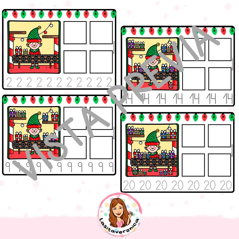 ¿Quiere ayudar a sus alumnos y/o hijos a contar del 0 al 20? Con estas plantillas trabajamos la subitización de los números del 0 al 20, así como la grafía de cada uno de ellos. Un recurso ideal para trabajar el conteo, la numeración, los colores, subitización, grafía y elementos propios de la Navidad. Además, con este recurso también estaremos favoreciendo la motricidad fina y la atención.