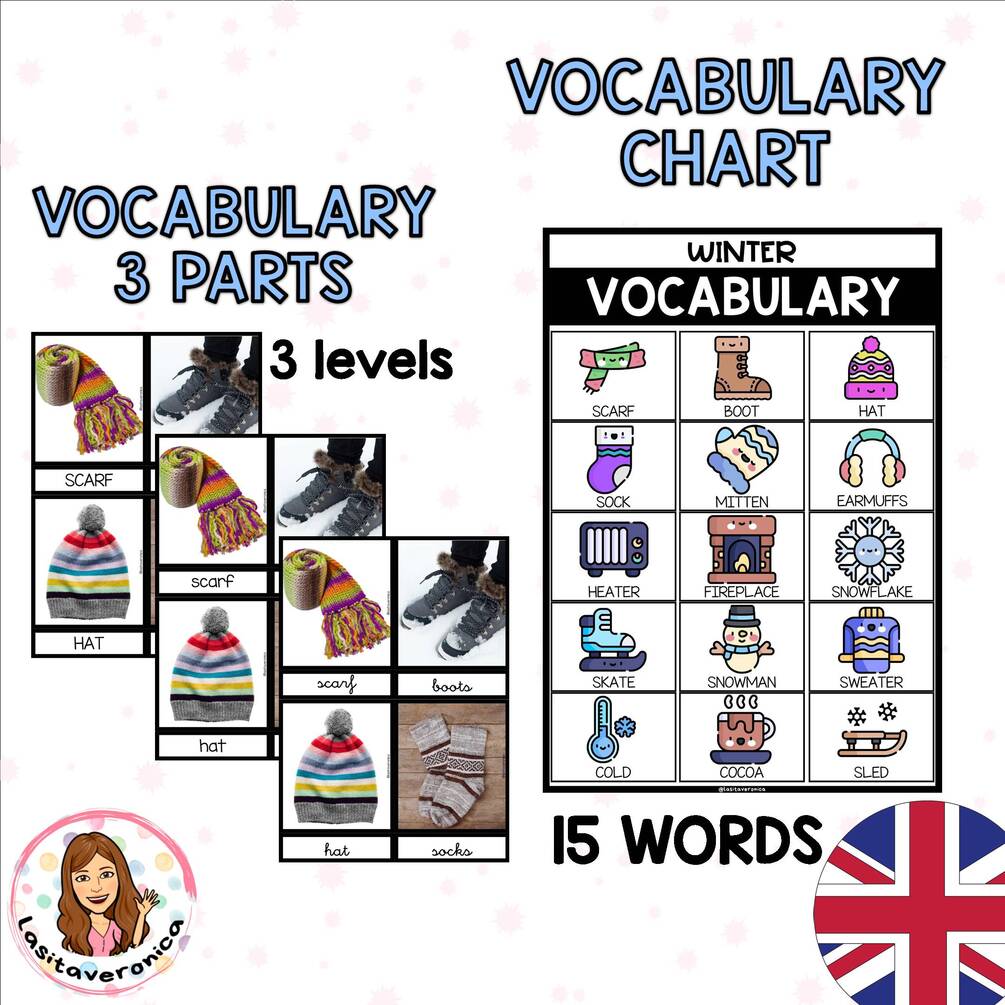 - TARJETAS DE VOCABULARIO invierno. English.