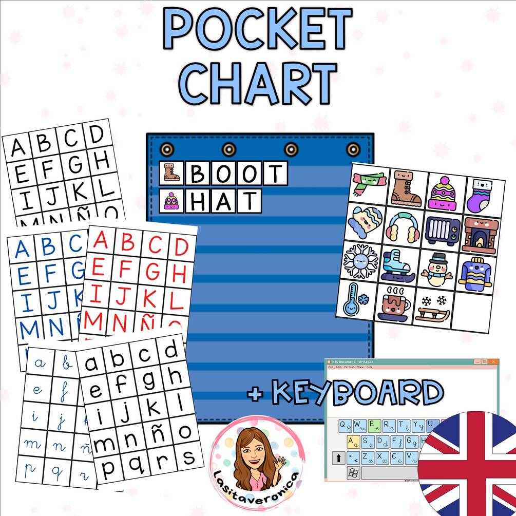 Con estas tarjetas de vocabulario en ESPAÑOL trabajaremos palabras relacionadas con elementos del INVIERNO. Además, este recurso incluye un "teclado" con las letras mayúsculas y minúsculas para jugar junto a las tarjetas de vocabulario de iniverno o cualquier otro vocabulario que estemos trabajando en nuestra sala.