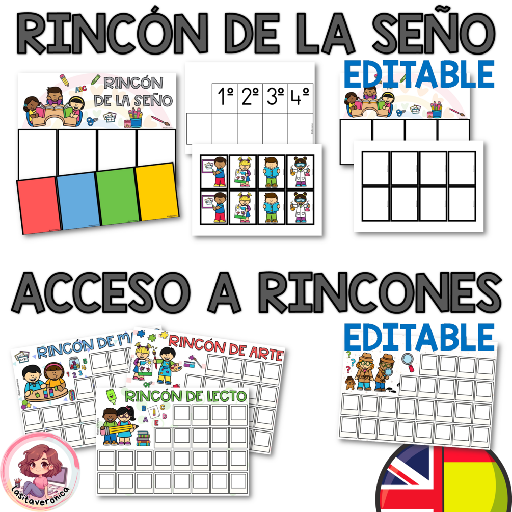 Carteles rincones. Español English Editable