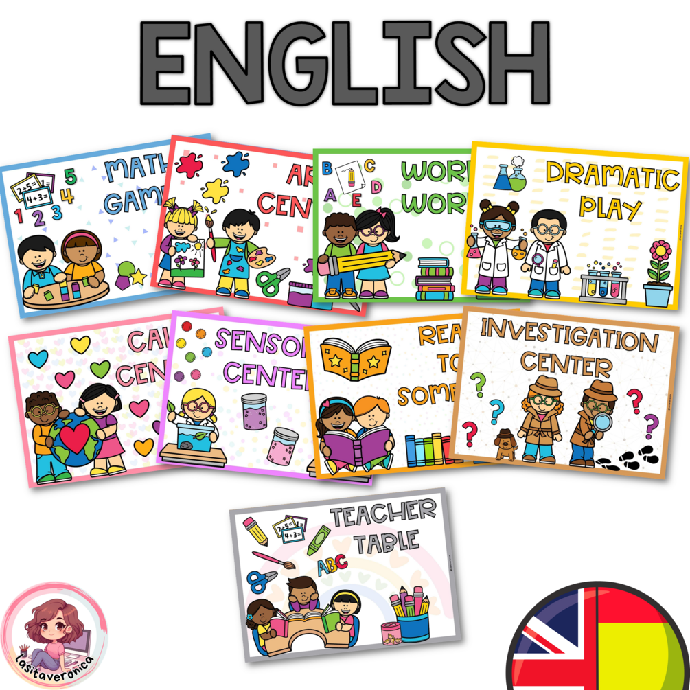 ¡TODO lo que necesitas para organizar tus rincones y centros de clase en un instante! ¡Simplemente imprime las tarjetas en el tamaño que desees, plastifícalo y listo!