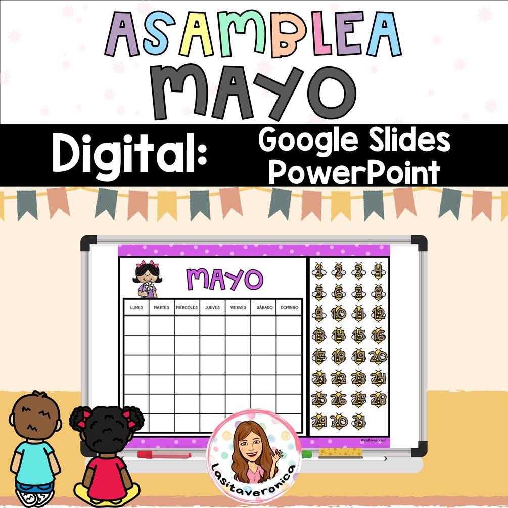 Calendario Mayo. Calendario Digital. Asamblea Infantil. Calendar morning meeting Digital Spanish. May. PowerPoint