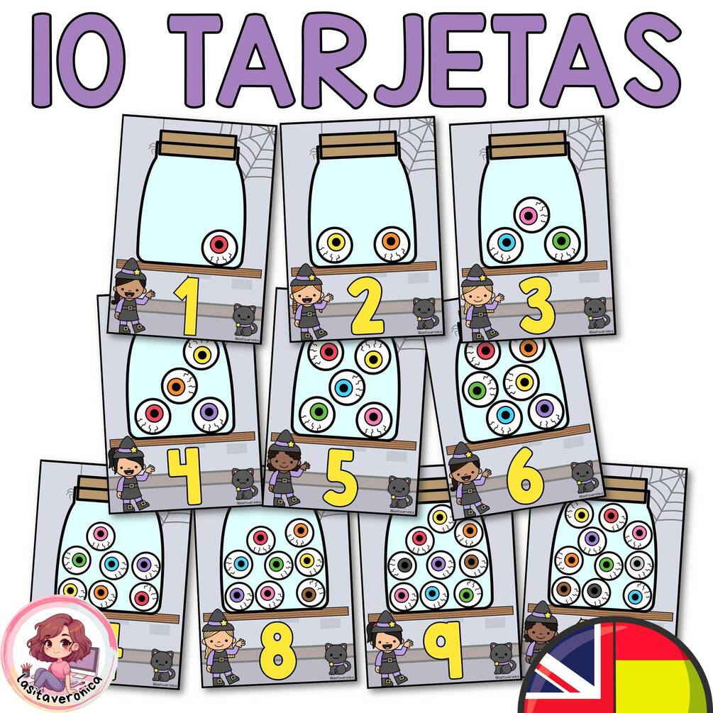 Contenido: Incluye 10 tarjetas en tamaño A4, con los números del 1 al 10, y 10 tarjtas en tamaño A5.