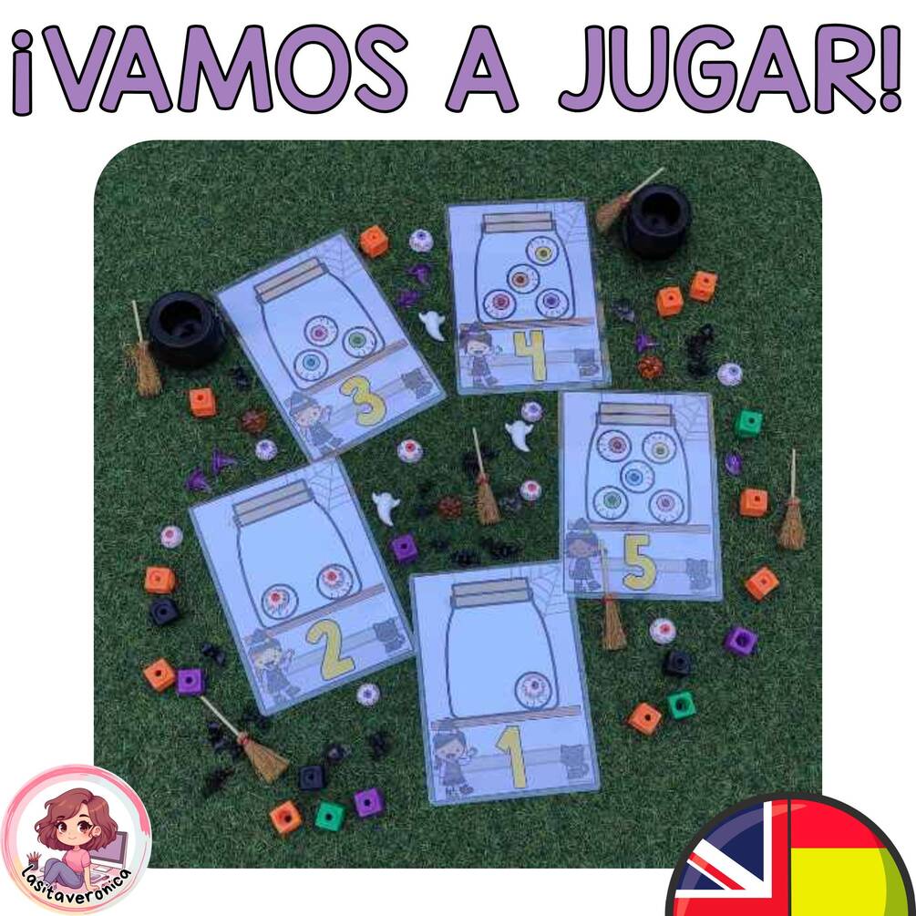 Un recurso ideal para trabajar el conteo, la numeración, la cantidad y los colores, relacionado con Halloween.