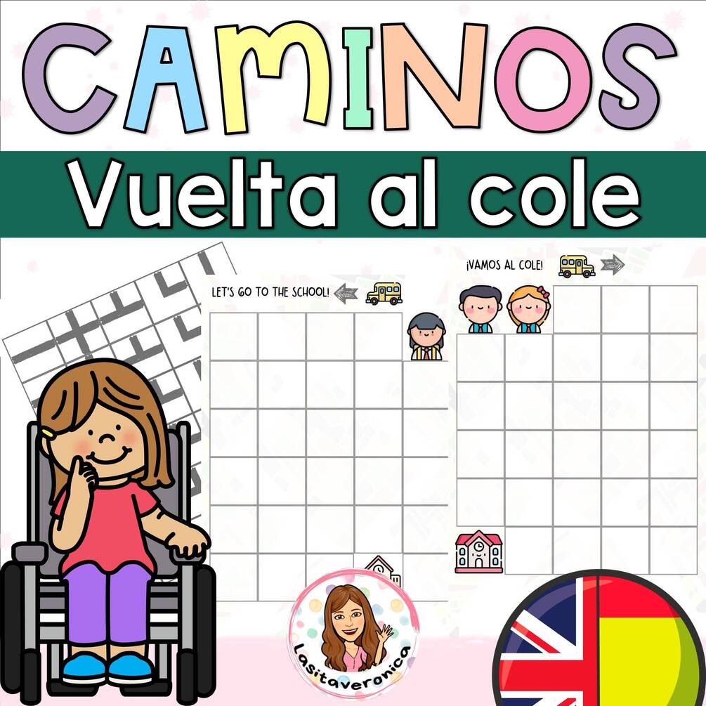 Divertido juego de geometría y orientación espacial en una cuadrícula. El objetivo es crear un camino con las tarjetas de los caminos desde el niño y niña hasta su colegio. ¿Serán capaces de llegar a tiempo al cole?