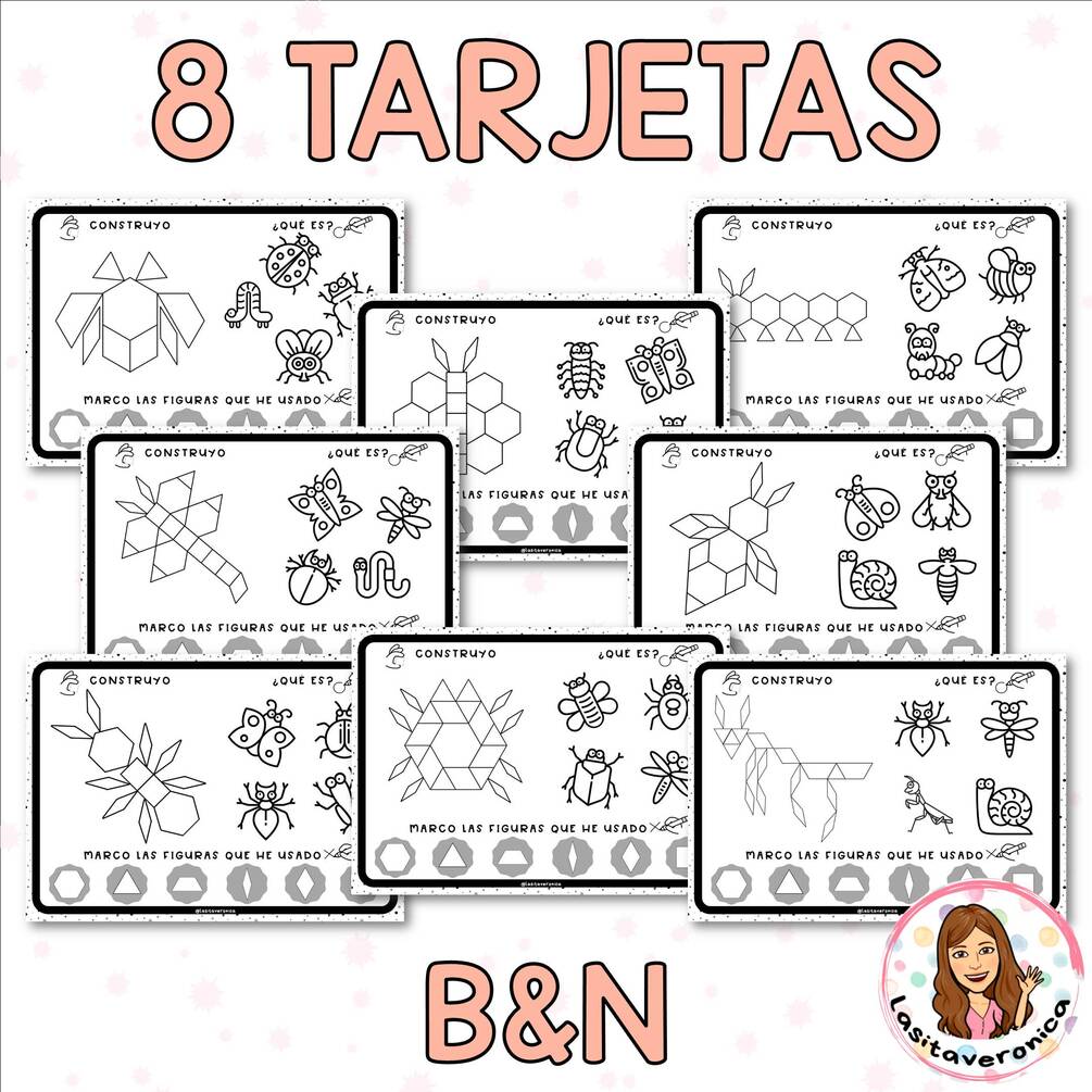 Contenido: Incluye un total de 48 plantillas: 2 modelos a color y 1 modelo en blanco y negro, 24 en tamaño REAL, imprime sin cambiar el porcentaje de impresión, 24 tamaño reducido, construyendo fuera del tapete. Contiene 8 insectos diferentes: mariquita, mariposa, oruga, libélula, avispa, hormiga, araña y mantis religiosa.