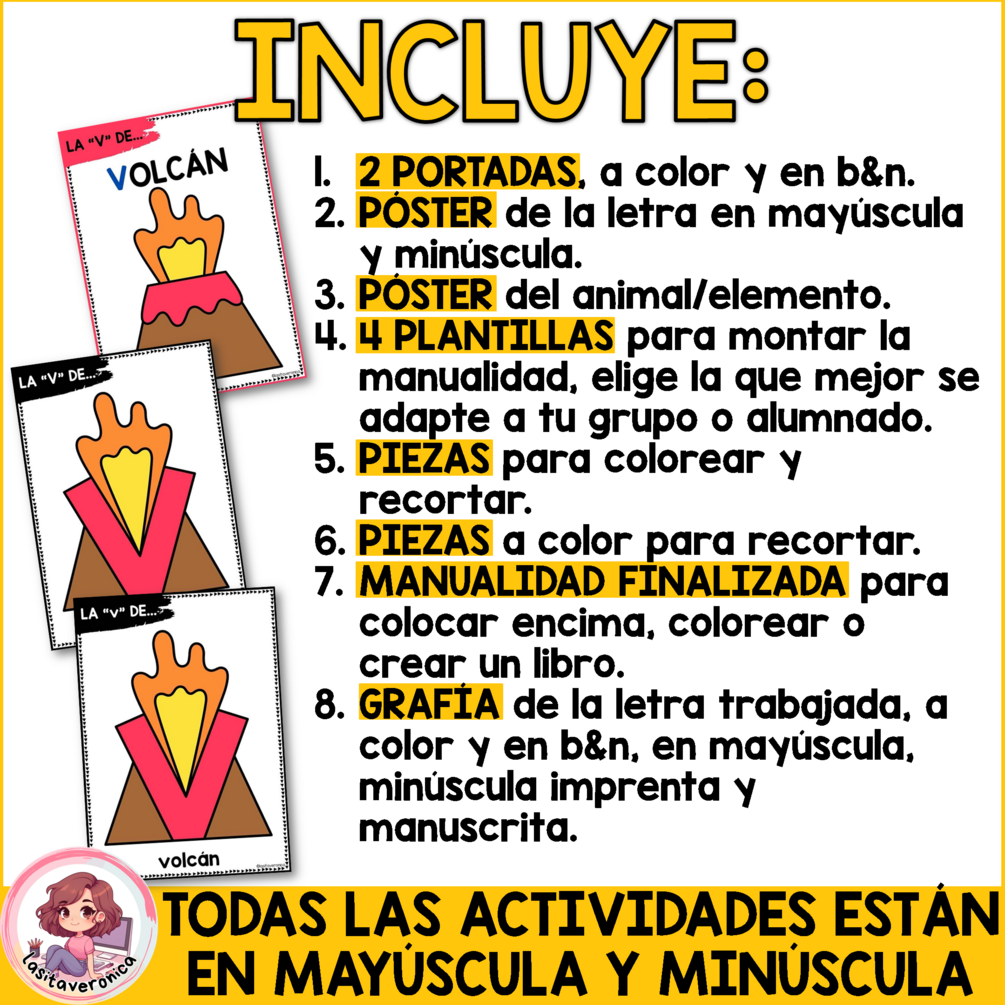 ¿Buscas manualidades de las letras del abecedario para tus estudiantes? ¡Tengo lo que necesitas! Con la manualidad del VOLCÁN, tu alumnado trabajará la letra "V", tanto en mayúscula como en minúscula.