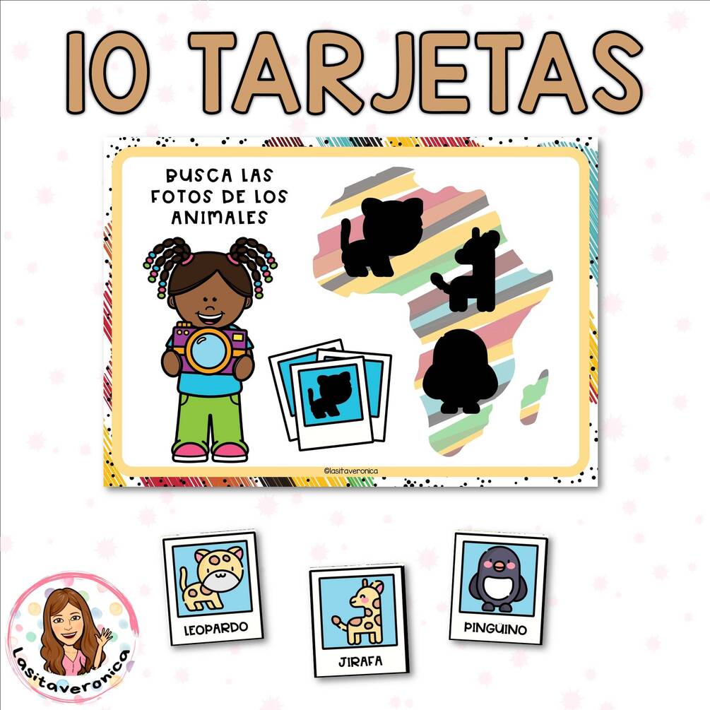 Con estas tarjetas de animales africanos trabajaremos con nuestro alumnado la atención, identificación, vocabulario, colores, descripciones y emparejamiento de animales propios del continente de ÁFRICA, fortaleciendo las habilidades cognitivas de sus estudiantes. De esta forma, mejorará sus habilidades visuales, memoria y concentración. Además de jugar a emparejar cada sombra con su animal, puede jugar con sus alumnos al memory con las tarjetas individuales de animales.