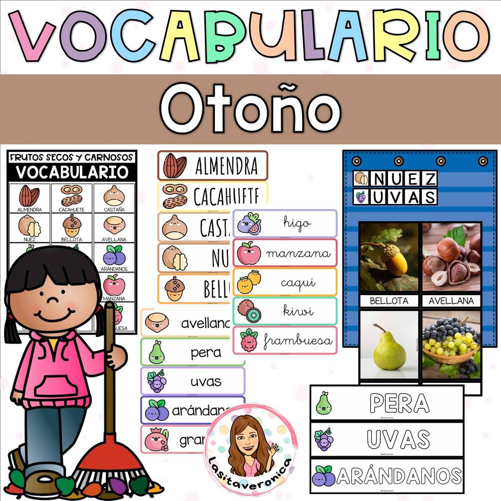 Con estas tarjetas de vocabulario en ESPAÑOL trabajaremos palabras relacionadas con los frutos secos y carnosos del OTOÑO. Además, este recurso incluye un "teclado" con las letras mayúsculas y minúsculas para jugar junto a las tarjetas de vocabulario de los frutos de otoño o cualquier otro vocabulario que estemos trabajando en nuestra clase.