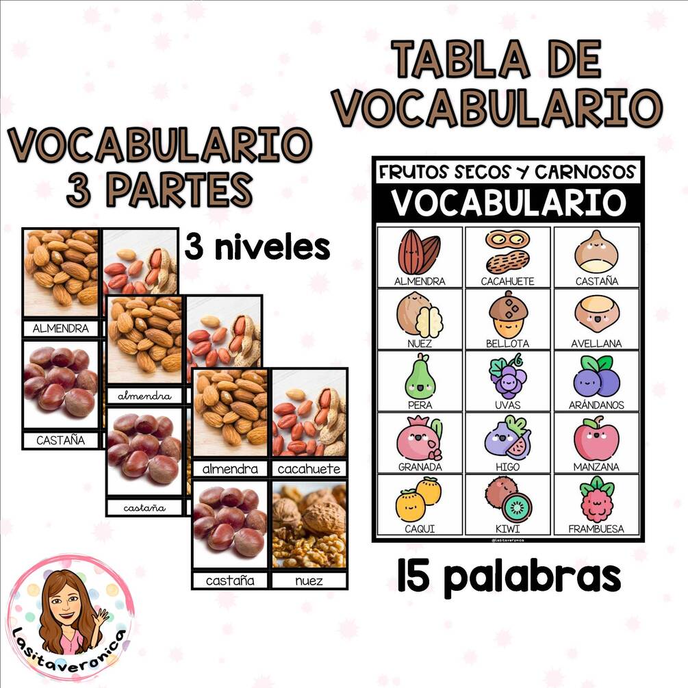 - VOCABULARIO FRUTOS SECOS Y CARNOSOS. OTOÑO. Español.