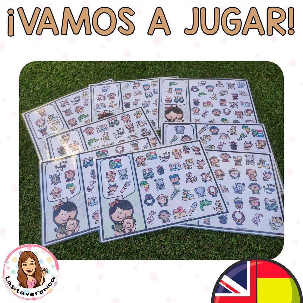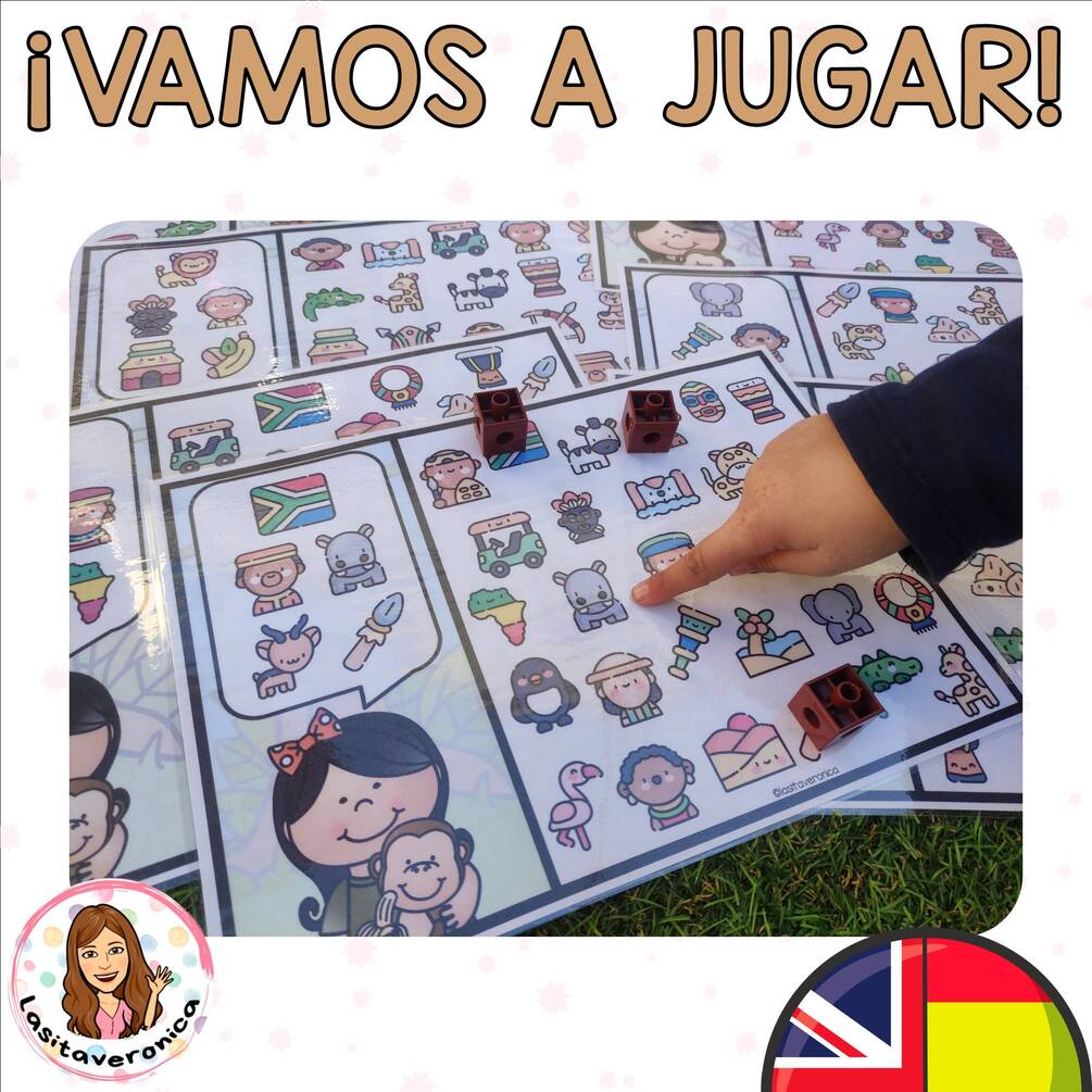 Con este juego, ideal para los centros de matemáticas, trabajaremos la atención, vocabulario, identificación de elementos de África, la discriminación visual y el reconocimiento de objetos, lugares, personas y animales. Los estudiantes tendrán que buscar en su plantilla todos los elementos indicados por la niña y marcarlos en su plantilla. Para taparlos podrán usar pompones, policubos, minigomas, contadores, fichas del parchís etc...