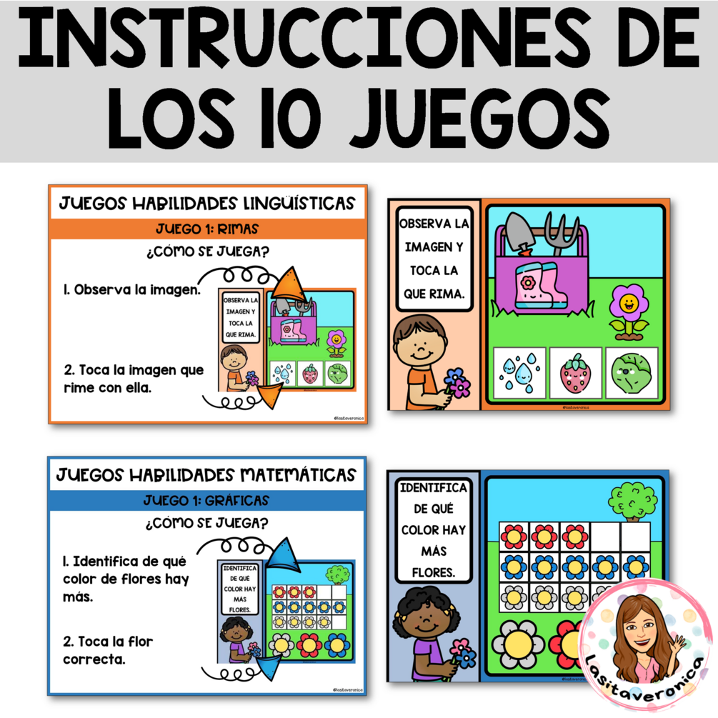 Contenido: El mes de ABRIL incluye 10 juegos, 5 juegos de habilidades matemáticas y 5 juegos de habilidades lingüísticas, con la temática de la PRIMAVERA, SPRING DIGITAL GAMES. Cada conjunto de habilidades se encuentran en un PowerPoint diferente.