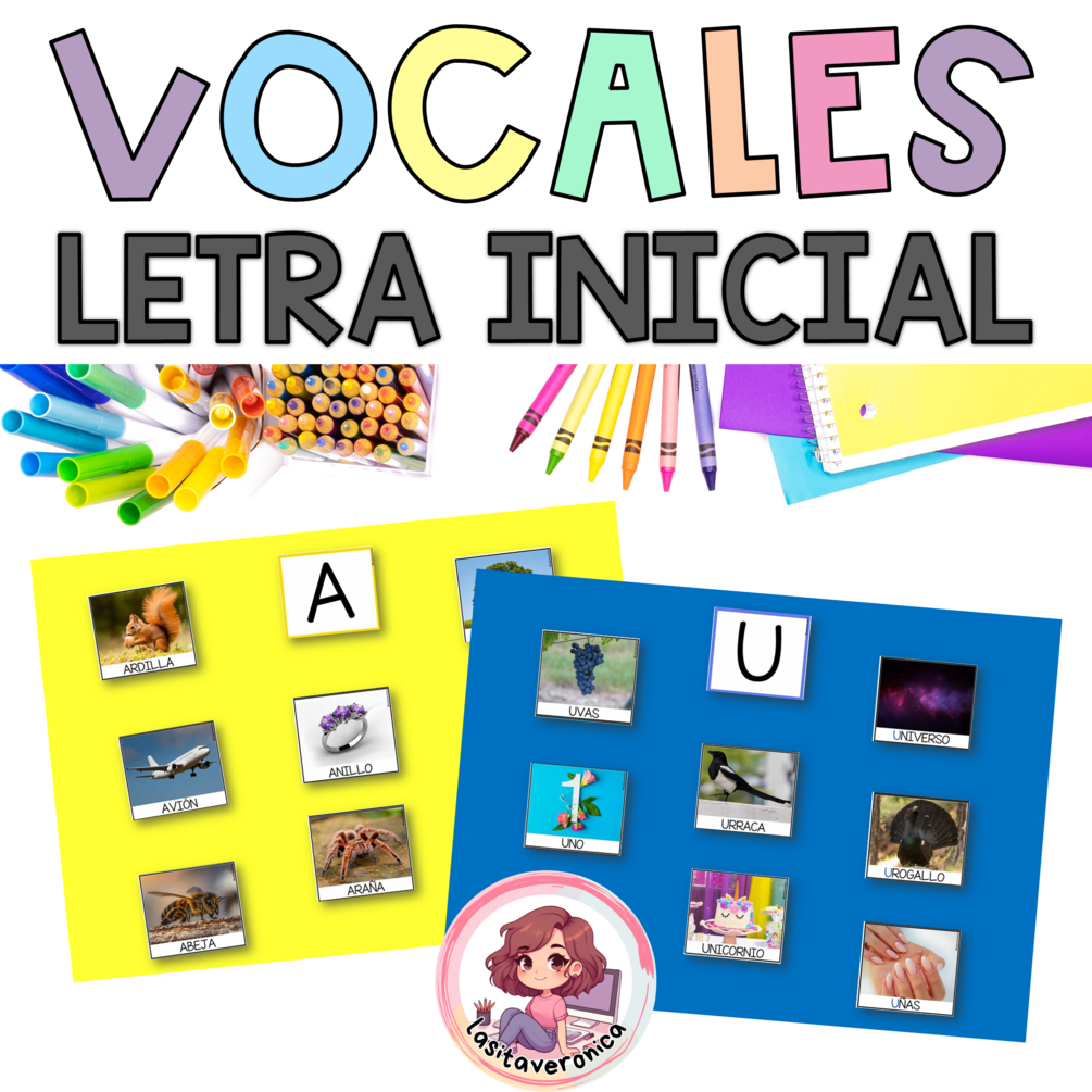 Las vocales. Letras y Sonidos iniciales. Spanish