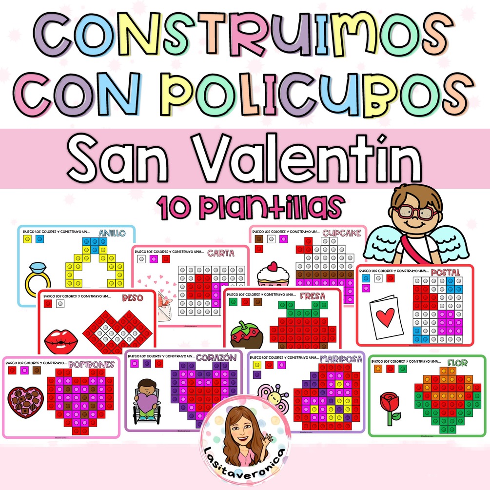 ¿A que niño o niña no le gusta las divertidas actividades con policubos? ¿Y San Valentín? Y si usamos estas plantillas en nuestras clases será un éxito garantizado. Gracias a ellas construiremos simpáticos elementos relacionados con SAN VALENTÍN usando los policubos / mathlink cubes / snape cube, con los que favoreceremos la motricidad fina, atención, identificación de color, etc..