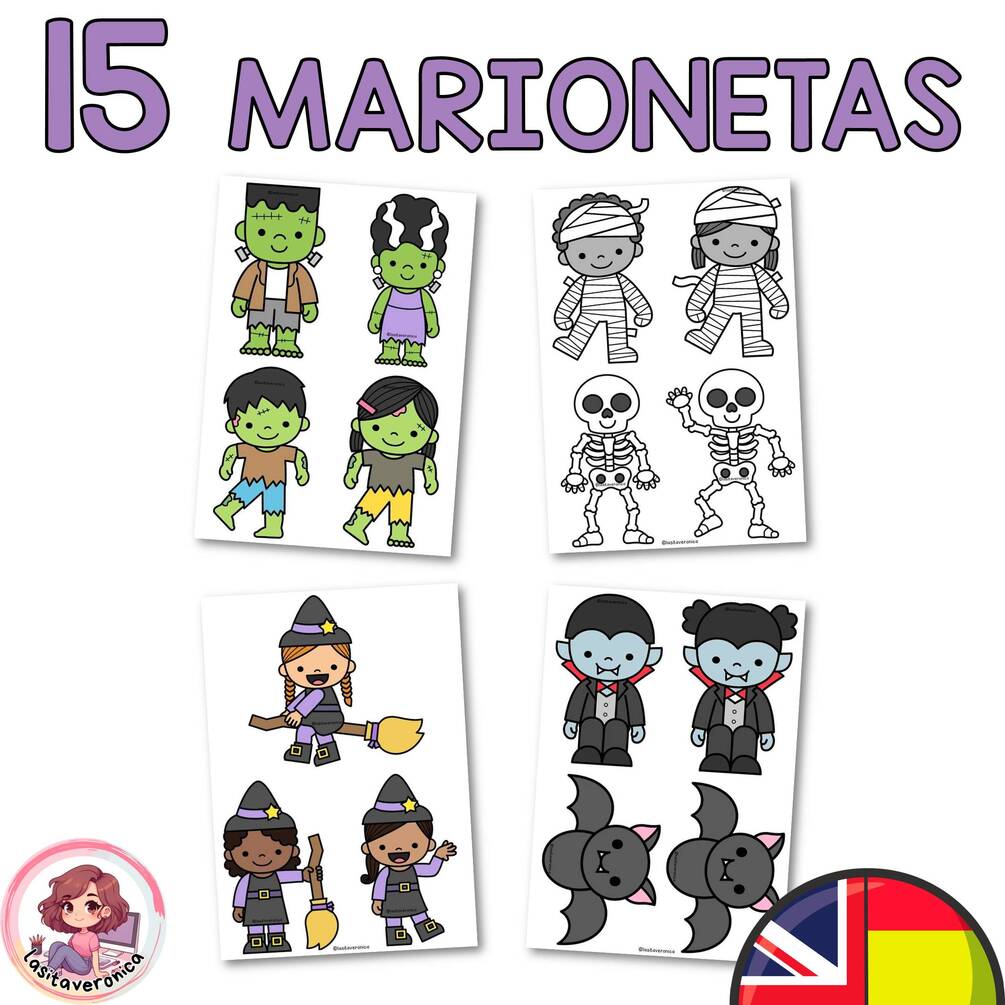 Contenido: Este recurso incluye marionetas de personajes de Halloween amigables, para jueguen a dramatizarlos y dejen volar su imaginación. Puede ver más información de todos los materiales en la VISTA PREVIA.
