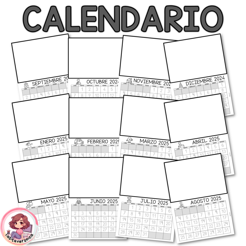 LA PRÓXIMA ACTUALIZACIÓN SERÁ EN DICIEMBRE 2025 (o antes) Importante: Los 12 dibujos dirigidos son iguales año tras año, lo único que se actualiza son los meses.