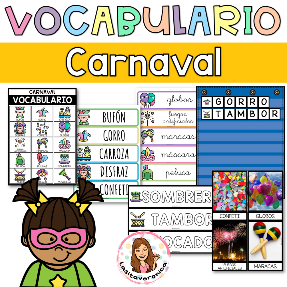 Vocabulario Carnaval / Mardi Gras Vocabulary. Write the Room. Spanish