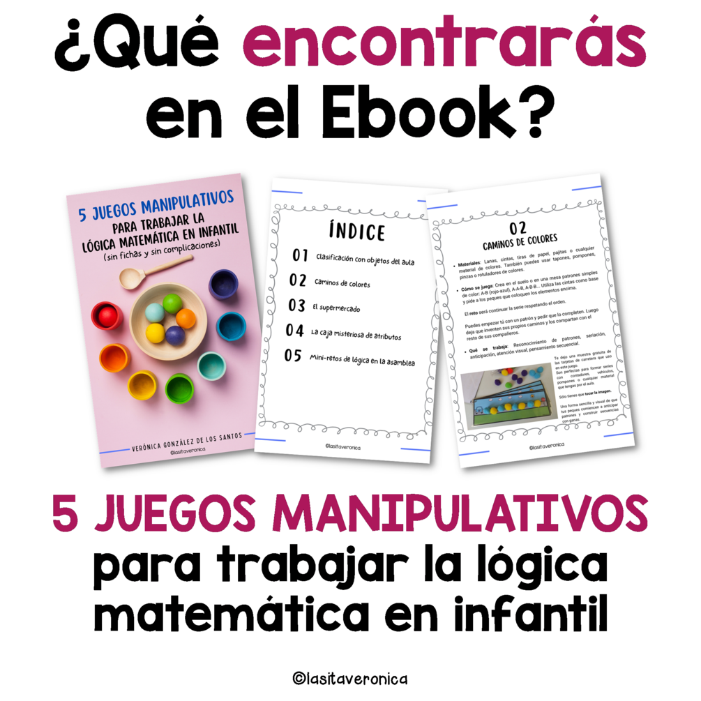 Te comparto 5 juegos manipulativos que utilizo en mi aula para trabajar la lógica matemática de forma vivencial y significativa, preparando el terreno para que, más adelante, la ficha tenga sentido.
