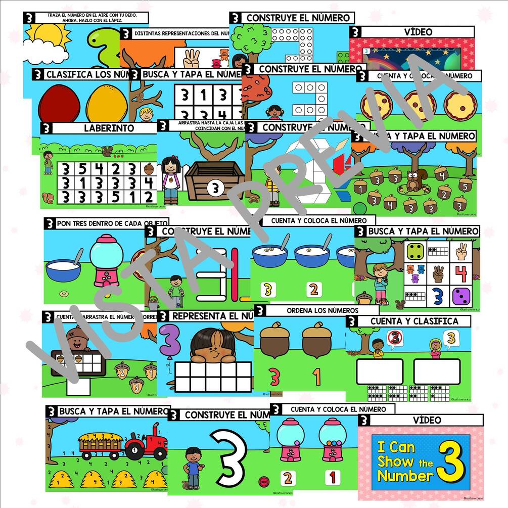 Contenido: 29 diapositivas para trabajar el número 3 de forma divertida, atractiva y digital. También es posible su impresión para trabajarlo de forma manipulativa.