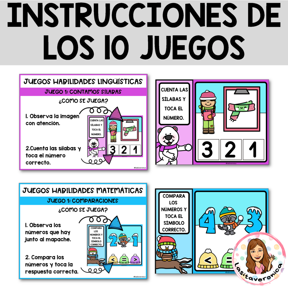 Contenido: El mes de ENERO incluye 10 juegos, 5 juegos de habilidades matemáticas y 5 juegos de habilidades lingüísticas, con la temática de la INVIERNO, WINTER DIGITAL GAME. Cada conjunto de habilidades se encuentran en un PowerPoint diferente.