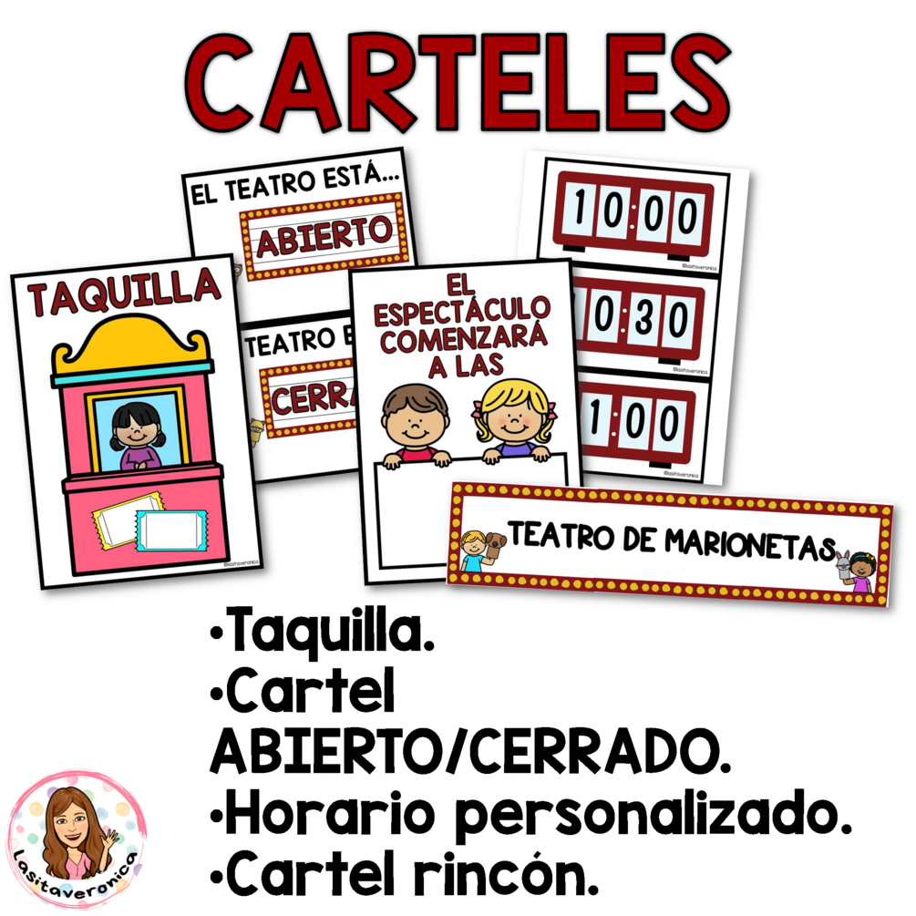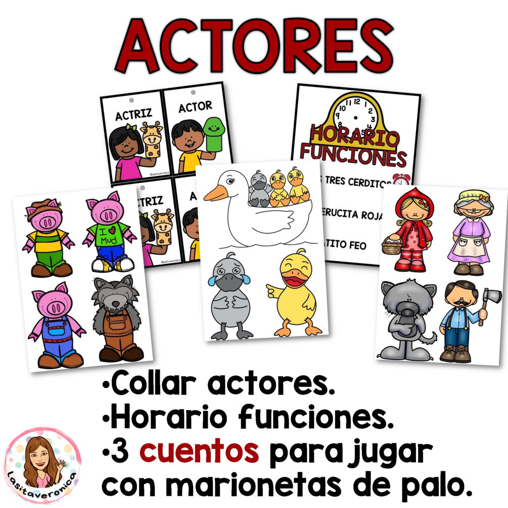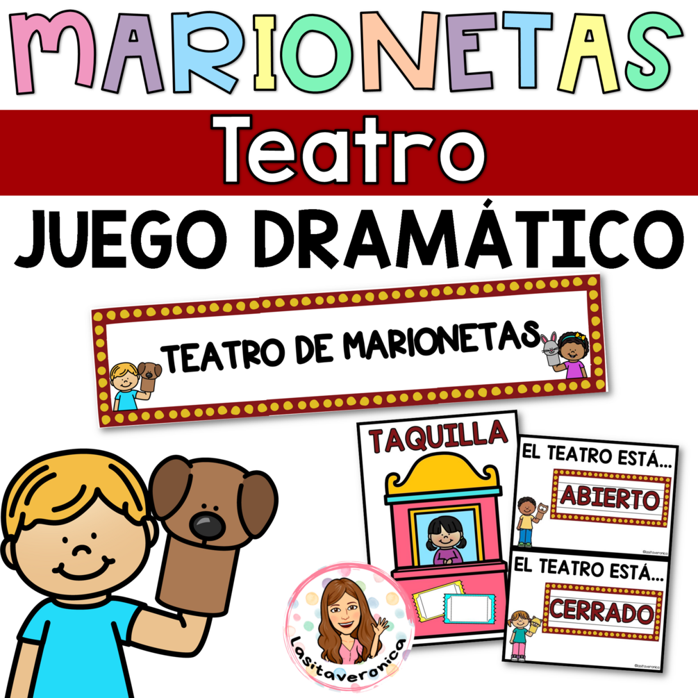Contenido: Este recurso incluye carteles y decoración para ambientar tu espacio de juego dramático / simbólico en un teatro de marionetas. Además, incluye 3 cuentos con sus personajes (Caperucita Roja, Los tres Cerditos y El Patito Feo), para jueguen a dramatizarlos. Puede ver más información de todos los materiales en la VISTA PREVIA.
