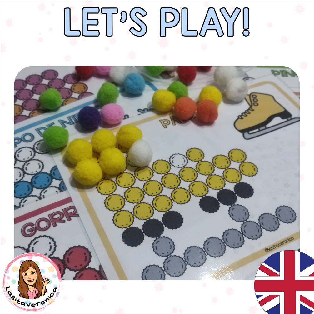 ¡No hay nada más divertido que jugar con los pompones! Gracias a estas plantillas con temática de invierno, el alumnado e hijos/as trabajarán y mejoran sus habilidades motoras, atención, lectoescritura, identificación de colores, motricidad fina,...