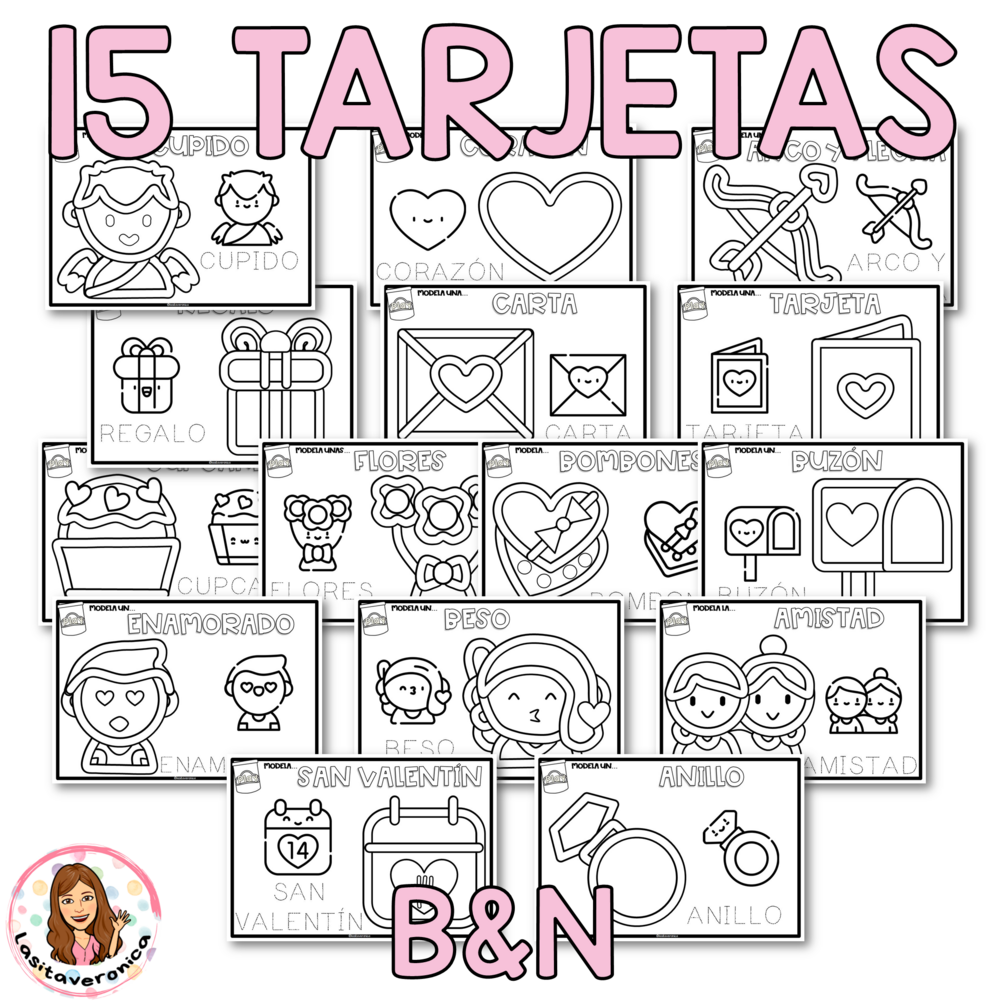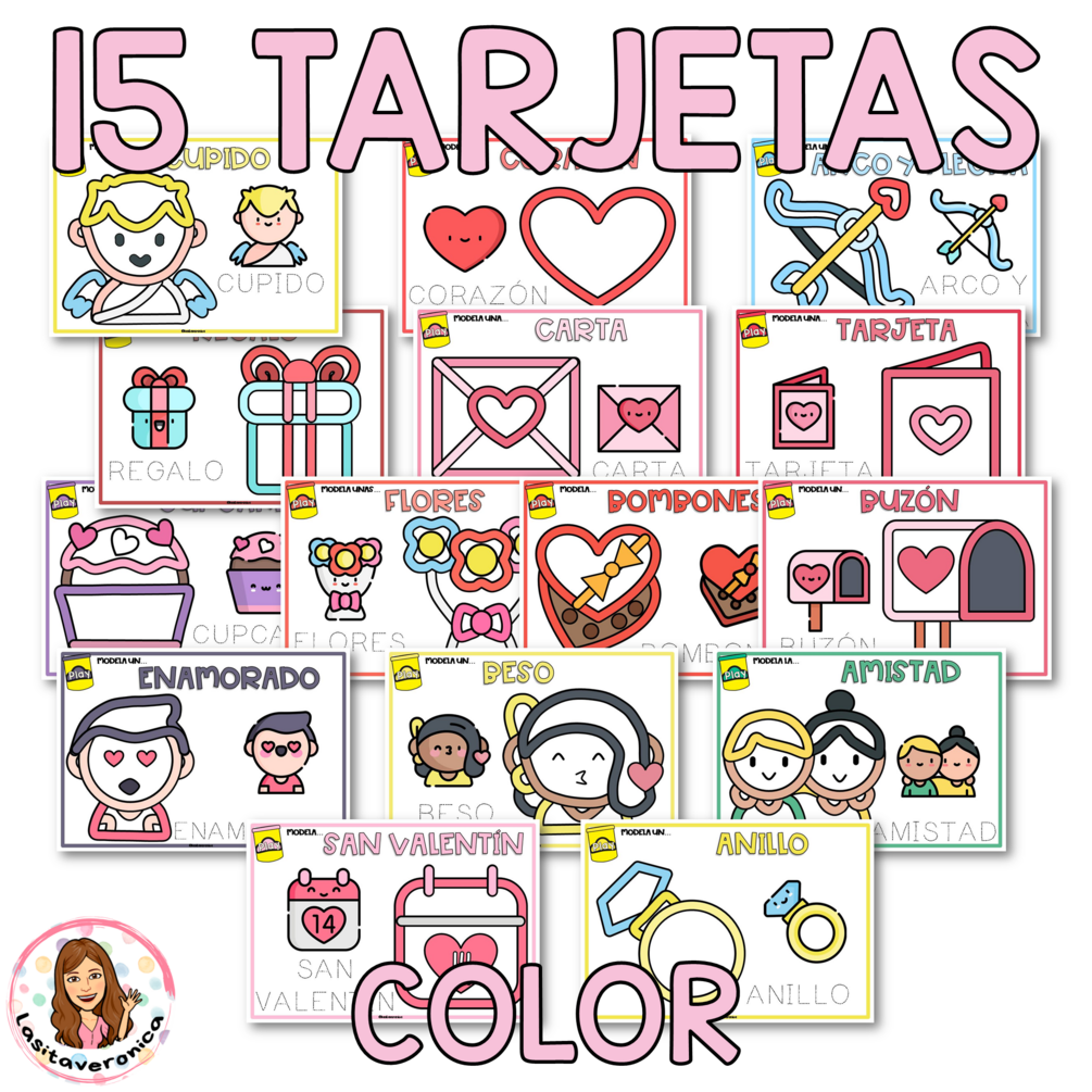 Contenido: Incluye 15 tarjetas con 15 reproducciones diferentes de elementos propios de San Valentín: Cupido, corazón, arco y flecha, regalo, carta, tarjeta, cupcake, flores, bombones, buzón, enamorado, beso, amistad, San Valentín y anillo.