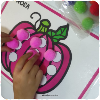 Estupendo material para trabajar la motricidad fina con pompones, plastilina, policubos, etc... y los colores con los más peques, en otoño, Halloween o en cualquier época del año.