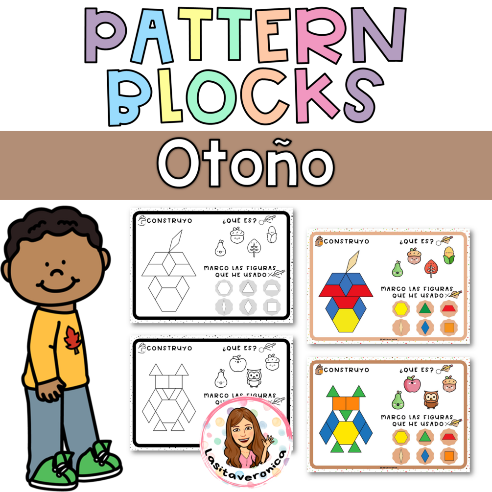 Pattern Blocks otoño / fall / autumn. Math centers. Geometry. Geometría. Spanish