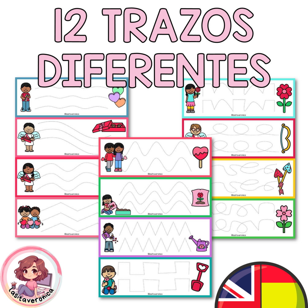 Trabajar los trazos no puede ser divertido cuando se utilizan los recursos y materiales necesarios. Con este recurso trabajaremos las habilidades motrices realizando hasta 12 tipos de trazos diferentes, relacionando elementos propios de San Valentín, siendo ideales para estas fechas y para el mes de febrero.