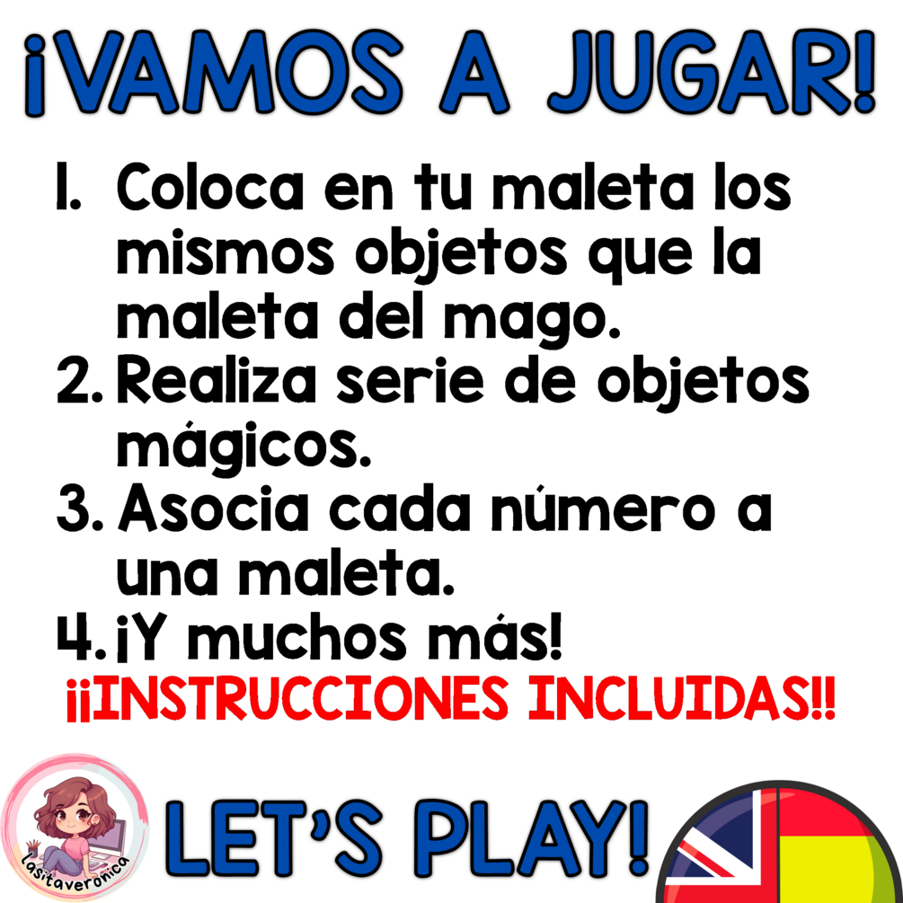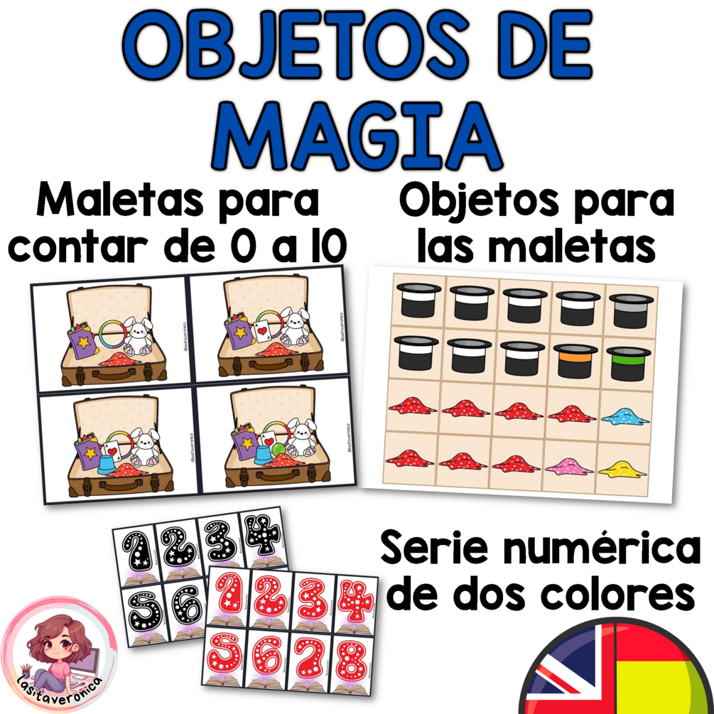 - Objetos mágicos para colocar en tu maleta de mago, realizar series y muchos juegos más que se incluyen en las instrucciones del recurso.