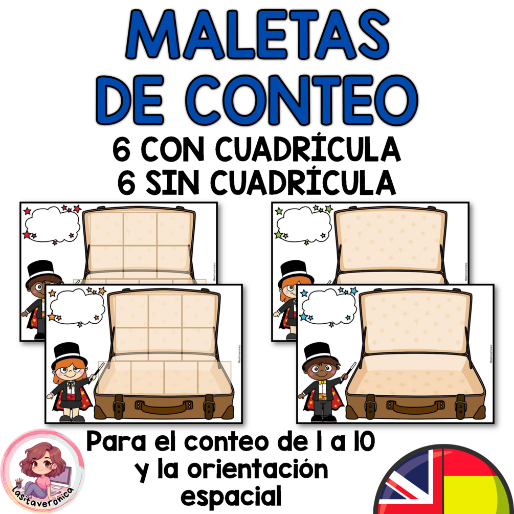 - 12 maletas de mago vacías para trabajar el conteo y la orientación espacial.