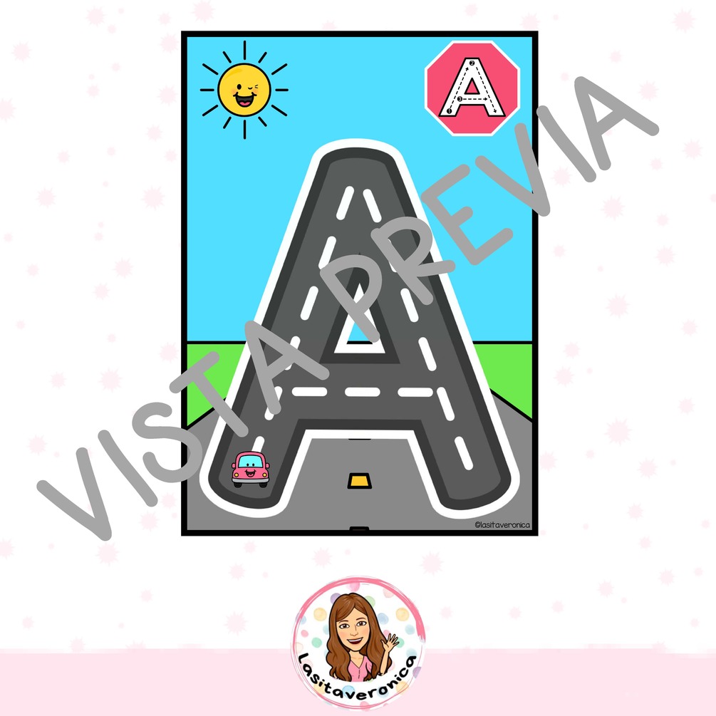 Trabajar el abecedario será muy divertido y atractivo para nuestro alumnado con estas plantillas con formas de carreteras. Nuestros estudiantes e hijos/as disfrutarán de su aprendizaje a la vez que trabajan y mejoran sus habilidades motoras, atención, lectoescritura, identificación de letras del abecedario, identificación de colores, motricidad fina,...