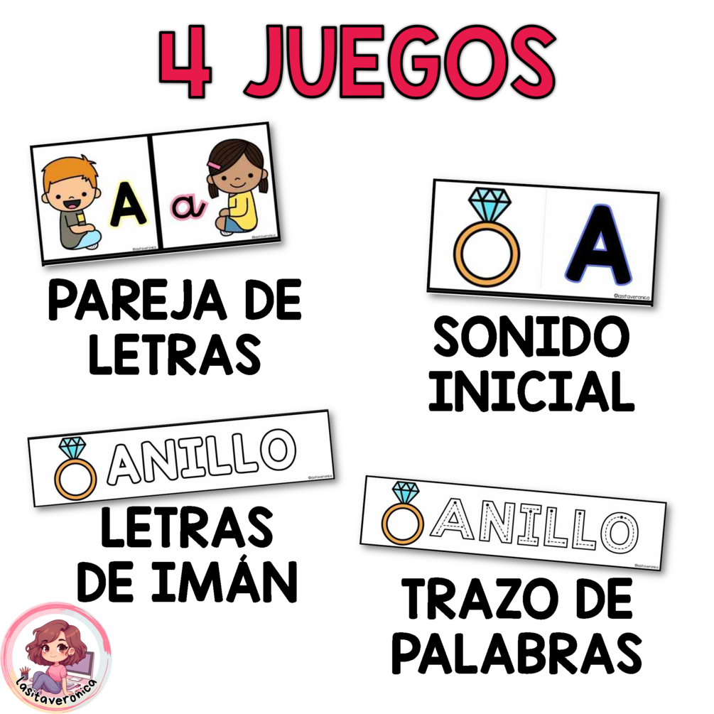 Juego manipulativo y muy motivador, pensado para acompañar los primeros pasos en el reconocimiento de letras, de forma respetuosa y adaptada a su ritmo.