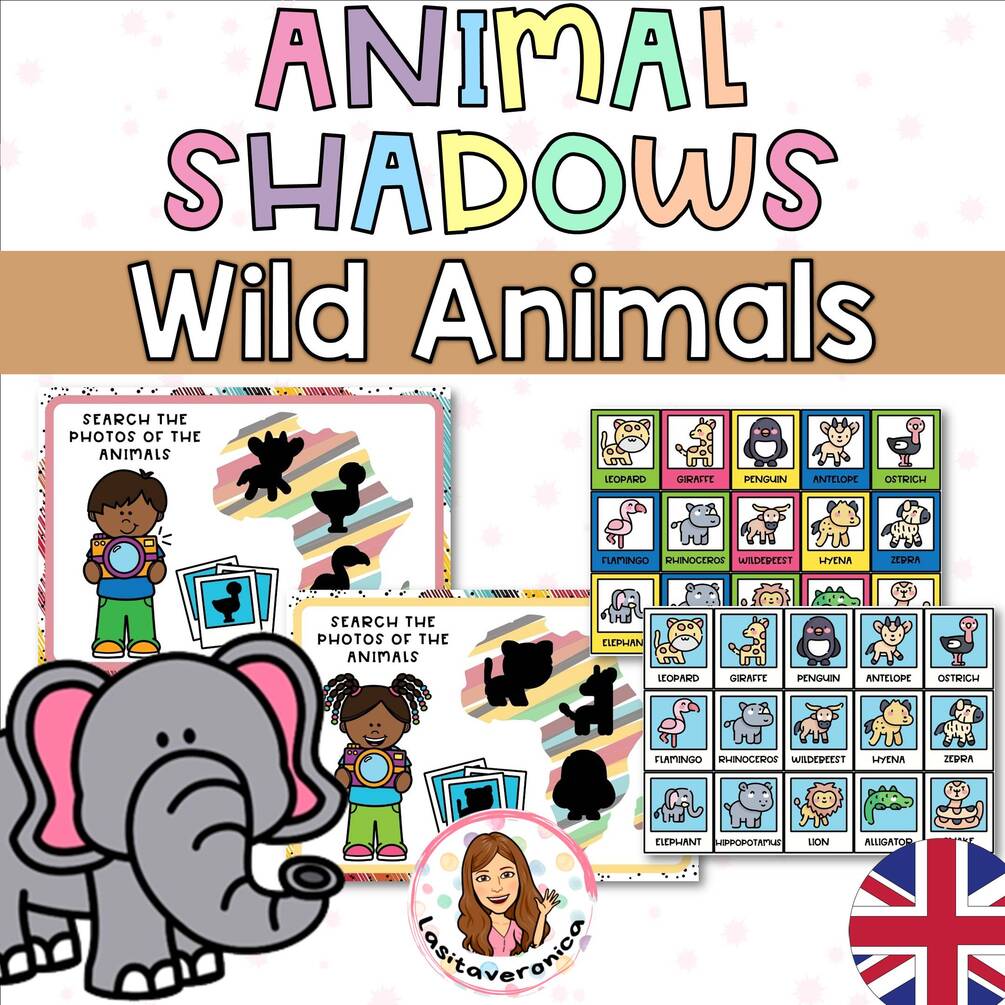 Wild Animals Shadows. Math centers. Africa. Zoo. Safari./ Sombras de animales salvajes africanos